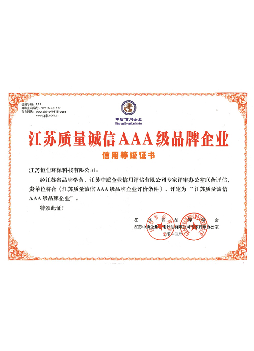 經過多年來的不懈努力,公司已經形成良好的管理和運作體系。獲得了<江蘇質量誠信3a品牌企業(yè)>榮譽證書 并已通過ISO9001質理管理體系認證、ISO1400環(huán)境管理體系標準及 ISO45001職業(yè)健康管理體系標準。